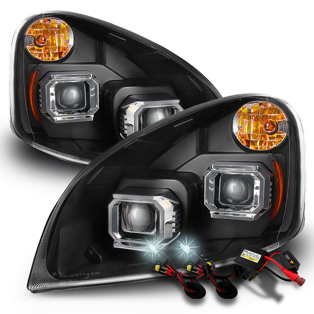 AKKON - For 2008-17 Freightliner Cascadia Dual Projector Headlights Assembly Black Housing Clear Lens Full Set