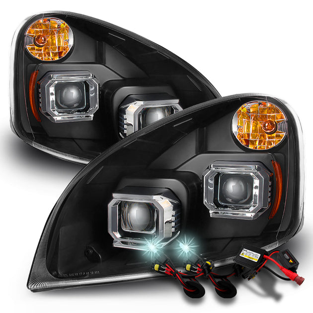 AKKON - For 2008-17 Freightliner Cascadia Dual Projector Headlights Assembly Black Housing Clear Lens Full Set + 6000K HID Kit