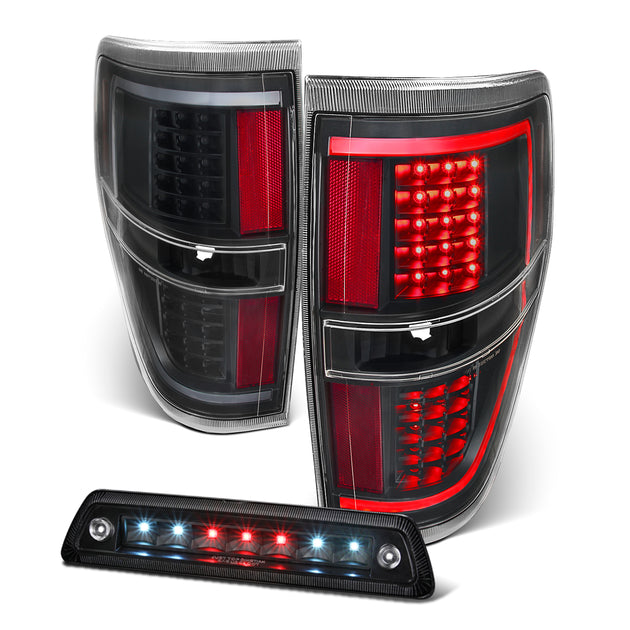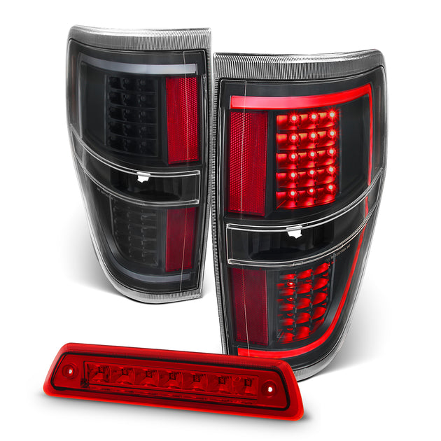 AKKON - For 2009-2014 Ford F150 Pickup Truck Full LED Black Bezel Tail Brake Lights Lamp + Black LED 3rd Brake Lamp