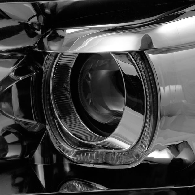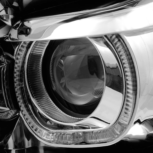 AKKON - For 2009-2014 Ford F150 Dual LED Halo Projector Chrome Headlight + C-Shape Red Strip Tail Lamps