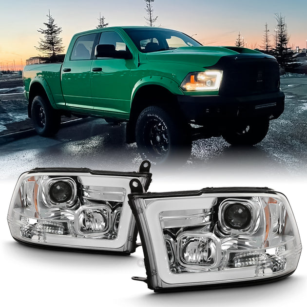 AKKON - For 2009-2018 Dodge RAM 1500 2500 3500 LED Daytime Running Light Bar Projector Headlights Chrome Housing Clear Lens Set