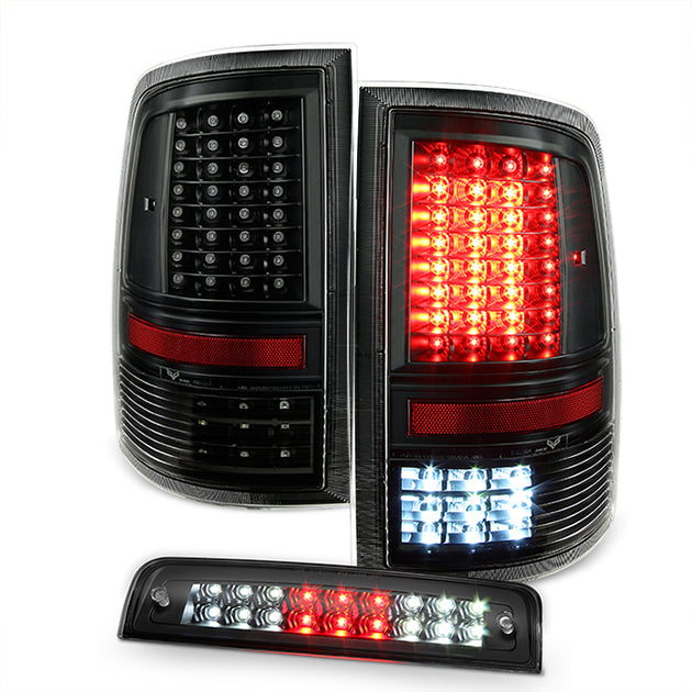 AKKON - For 2009-2018 Dodge Ram 1500 2500 3500 Full LED Black Smoke Taillights Set + Black LED 3Rd Brake Lamp Pair