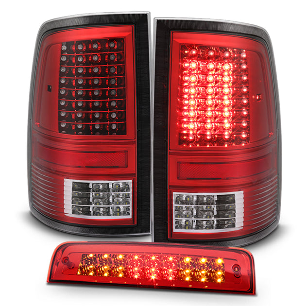 AKKON - For 2009-2018 Dodge Ram 1500 2500 3500 C Strip LED Red Lens Taillights Set + LED 3Rd Brake Lamp Replacement