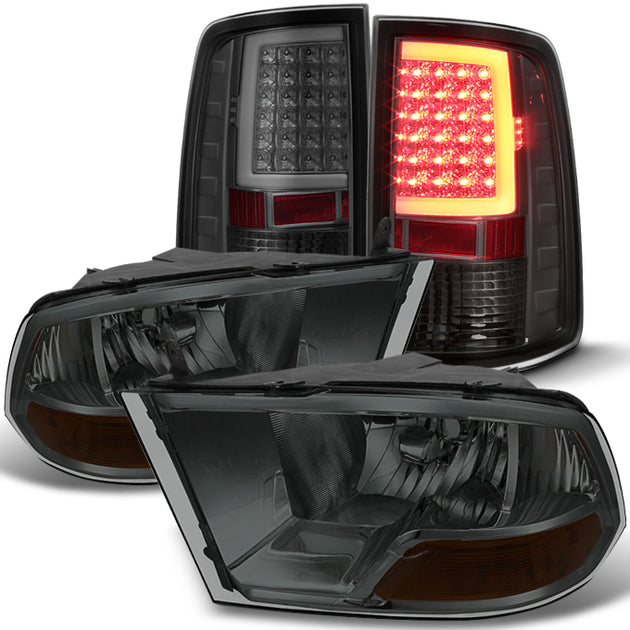 AKKON - For 2009-2018 Dodge Ram 1500 2500 3500 Pickup Truck Smoked Halogen Type Headlights + Led Tail lights Combo