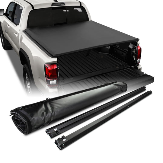AKKON - Fits 2016-2022 Toyota Tacoma Crew / Extended Cab Pickup 5 Feet 60 Inches Bed Black Soft Roll Up Tonneau Cover & Hardware