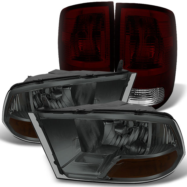 AKKON - For 2009-2018 Pickup Truck Ram 1500/2500/3500 Smoked Headlight + Dark Red Tail Lights Lamp Combo