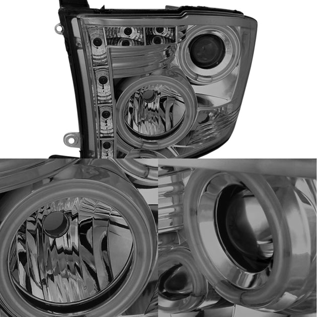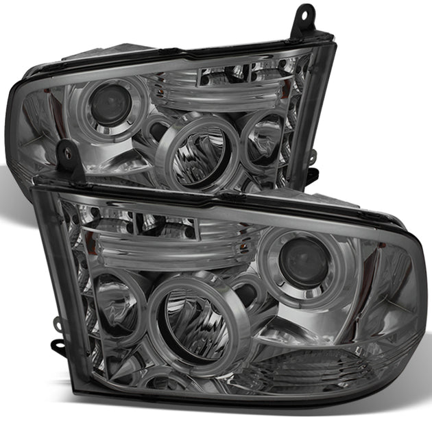 AKKON - For 2009-2018 Ram Pickup Truck Smoked Smoke Dual CCFL Halo Ring LED Projector Headlights Replacement Pair