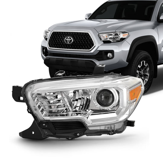 AKKON - Fits 2016-2022 Toyota Tacoma w/o LED DRL Chrome Headlight [Halogen Models] Driver Left Side Headlamp