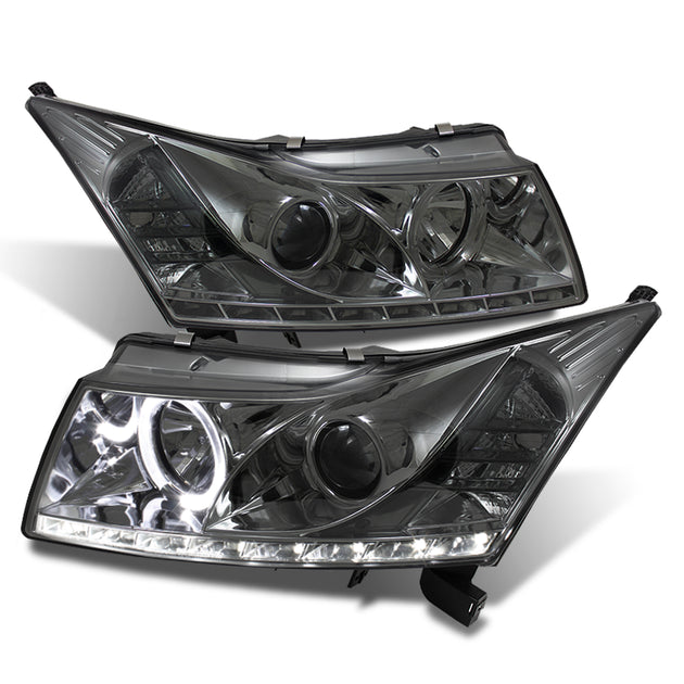 AKKON - For 2011-15 Chevy Cruze 16 Limited Sedan LED Angel Eyes Daytime Running Lamp Strip Projector Headlights Chrome Housing Smoked Lens