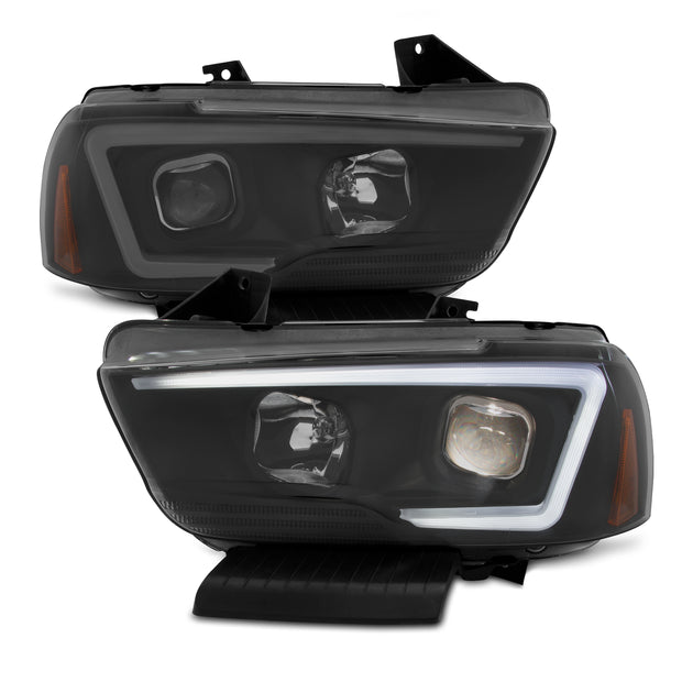 AKKON - For 2011-14 Dodge Charger Switchback LED Strip DRL Projector Headlights - Chrome Housing Clear Lens