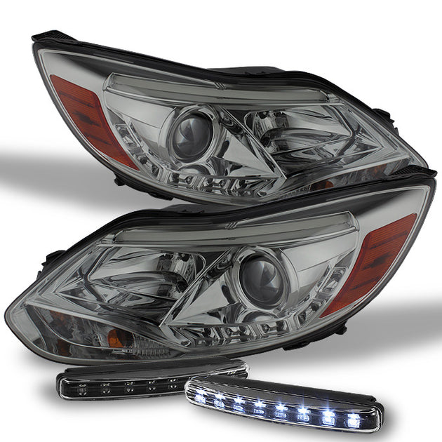 AKKON - For 2012-2014 Ford focus Smoked DRL LED Strip Projector Headlights + Black LED Running Lights