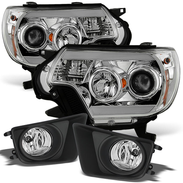 AKKON - For 2012-2015 Toyota Pickup Tacoma Clear LED DRL Tube Projector Headlights + Fog Light Lamp Set