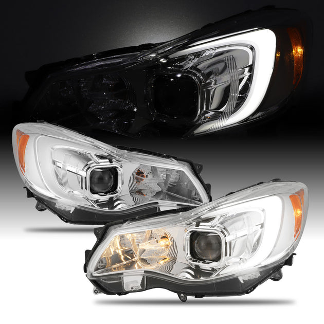 AKKON - For 2012-2015 Subaru Impreza / 2013-2015 XV Crosstrek Halogen Projector Chrome Headlights -w/ Tube Parking Lamp