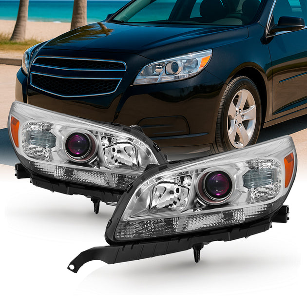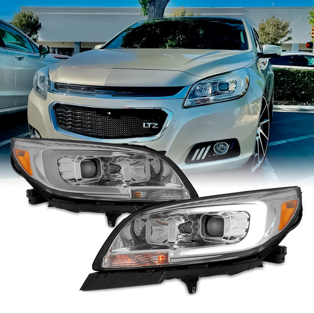 AKKON - For 2013-2015 Chevy Malibu C-Bar LED DRL Left and Right Chrome Housing Projector Headlights