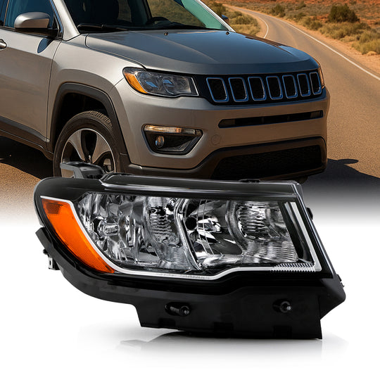 Regular price $88.99This is a 100% brand new Driver Side Headlights Replacement Assembly in Polished Chrome Housing With Crystal Clear Lens Compatible With: 2017-2021 Jeep Compass Manufacturer Part Number: ,,CH2502295, 55112707AC, 55112707AE Color: Black Housing with Clear Lens... -