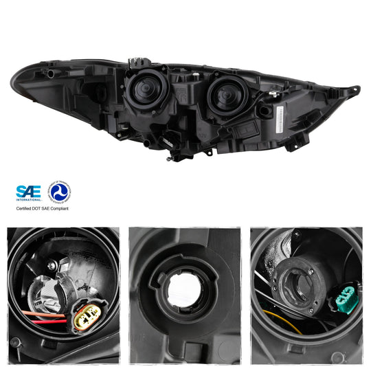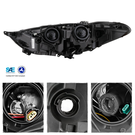 AKKON - Fits 2017-2020 Ford Fusion Sedan w/o LED DRL Model [Halogen Type] Projector Chrome Headlight Passenger Right Side