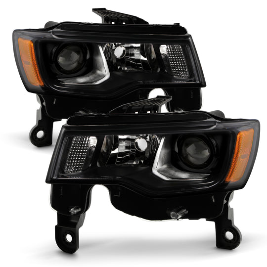 AKKON - Fits 2017-2021 Jeep Grand Cherokee SUV [Halogen Type] Projector Black Interior Headlights Pair Driver + Passenger