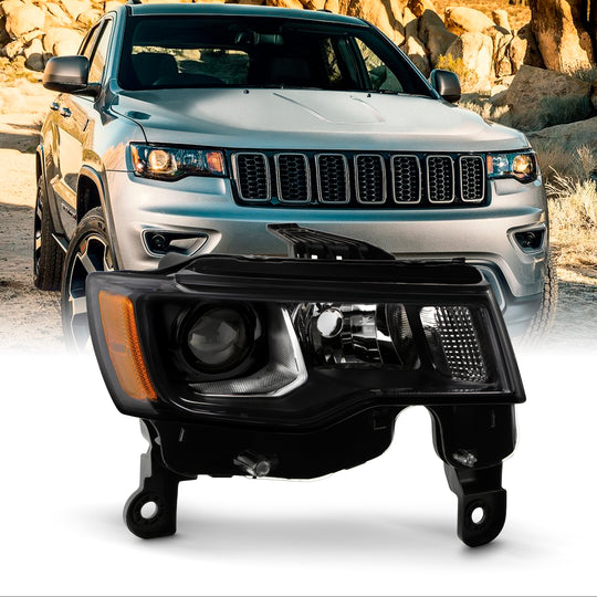 Regular price $118.99This is a 100% brand new piece of Replacement Headlight in Black Housing with Clear Lens Compatible With: 2017-2021 Jeep Grand Cherokee w/ Black Interior Halogen Type Headlight Model ATTN: Compatible w/ Black Interior Halogen Type... -
