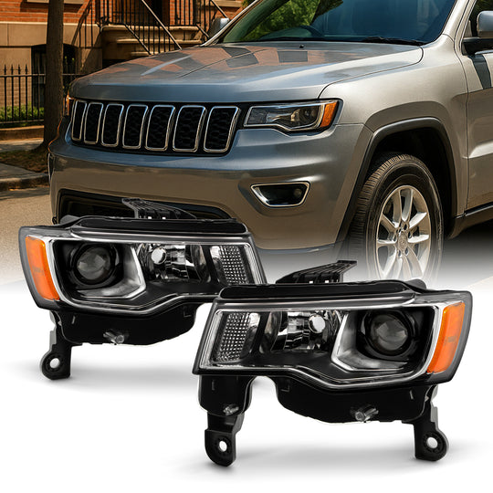 Regular price $328.99This is a 100% brand new pair of Replacement Headlights in Black Housing with Clear Lens Compatible With: 2017-2021 Jeep Grand Cherokee [Halogen Type] with LED DRL Headlight Models ATTN: Compatible [Halogen Type] with LED DRL... -