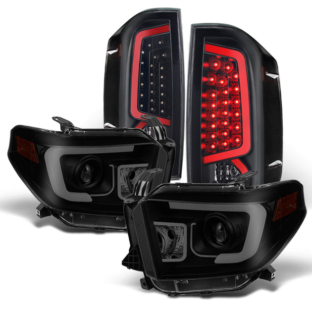 AKKON - For 2014 - 2021 Toyota Tundra Black DRL LED Tube Projector Headlight & Black Smoked LED Taillight Set