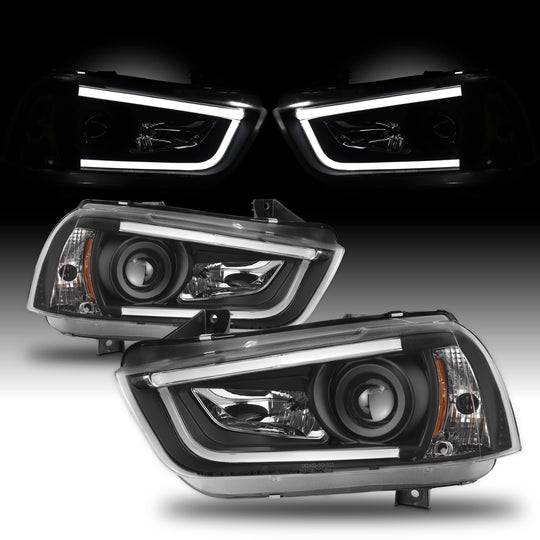 AKKON - Fit 2011 2012 2013 2014 Dodge Charger Halogen Model Daytime Running Light LED Tube Projector Headlights Black