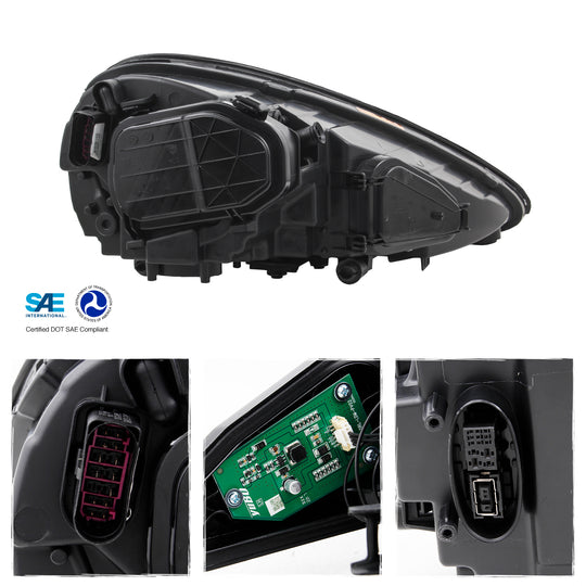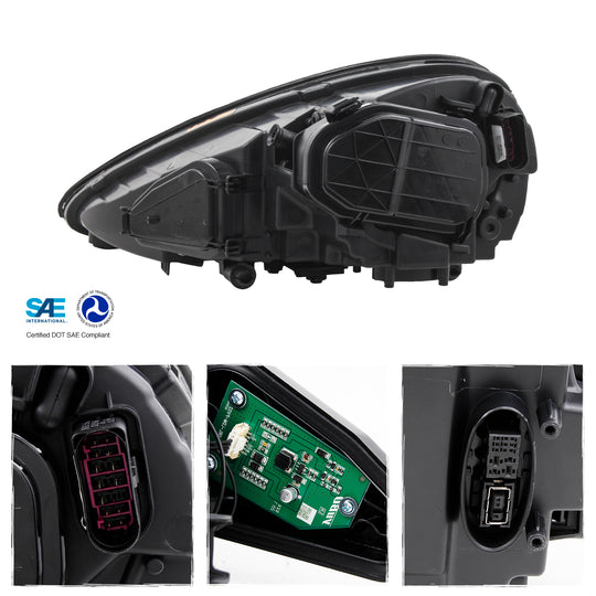 AKKON - Fit 2011 2012 2013 2014 Porsche Cayenne Halo Headlight 4-LED DRL AFS Projector Premium Quality Replacement Passenger Side