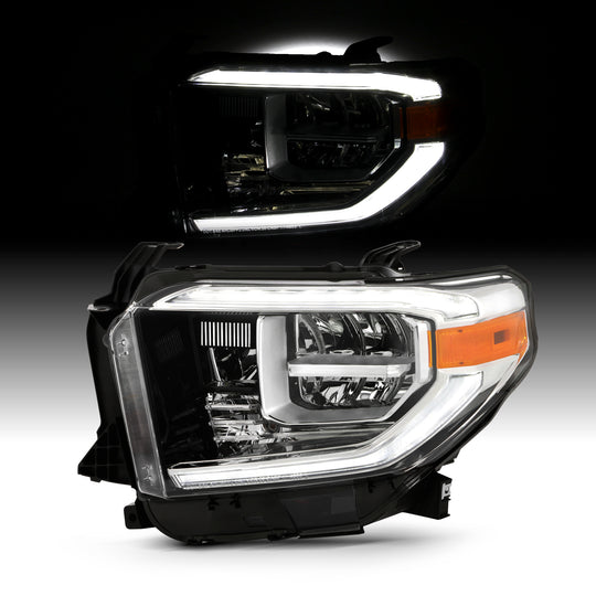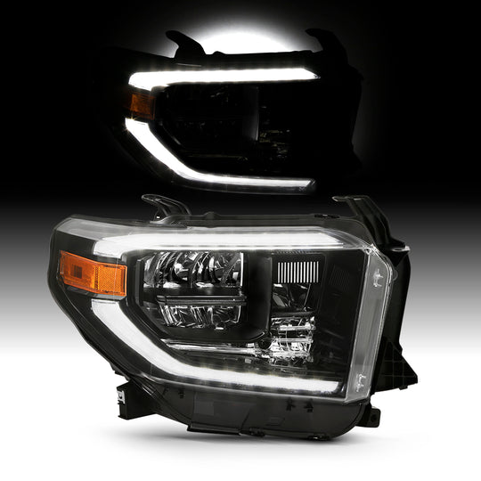 AKKON - Fits 2018 2019 2020 Toyota Tundra Pickup w/ DRL LED [Tube Bar] Black Headlight Headlamp Driver Left Side Replacement
