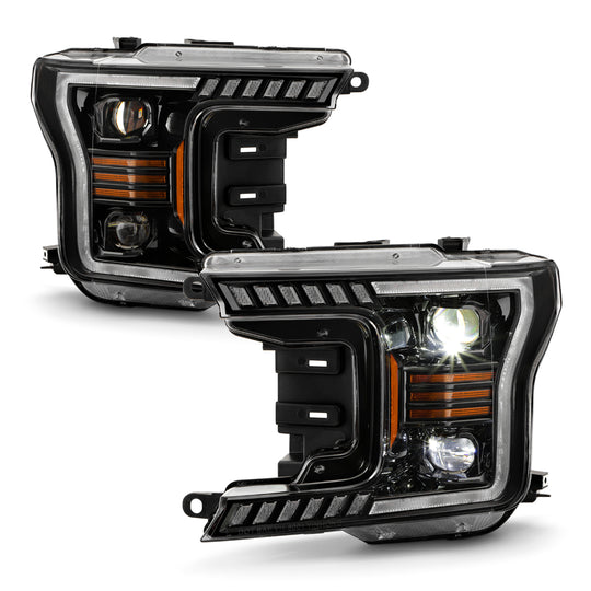 AKKON - Fits 2018-2020 Ford F150 Pickup [Full LED] Projector Black Headlights Pair w/ Sequential Signal Amber Parking Lamp