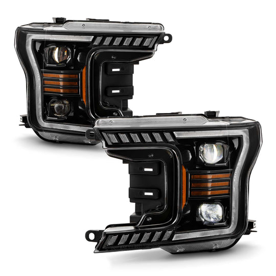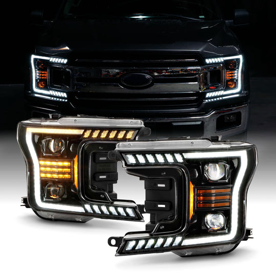 AKKON - Fits 2018-2020 Ford F150 [Halogen Type] Projector Black Headlights Pair w/LED DRL Running Sequential Turn Signal