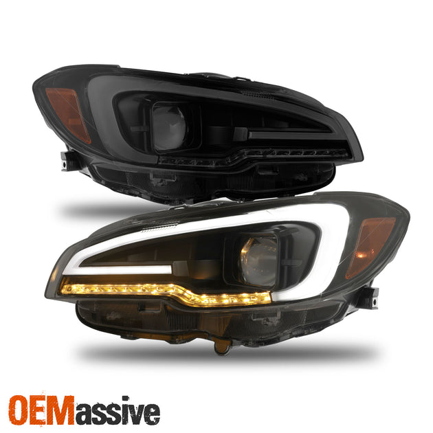 AKKON - For 2015-2021 Subaru WRX/WRX STI C-Bar LED DRL + LED Sequential Signal Black Projector Headlights + 8000k HID