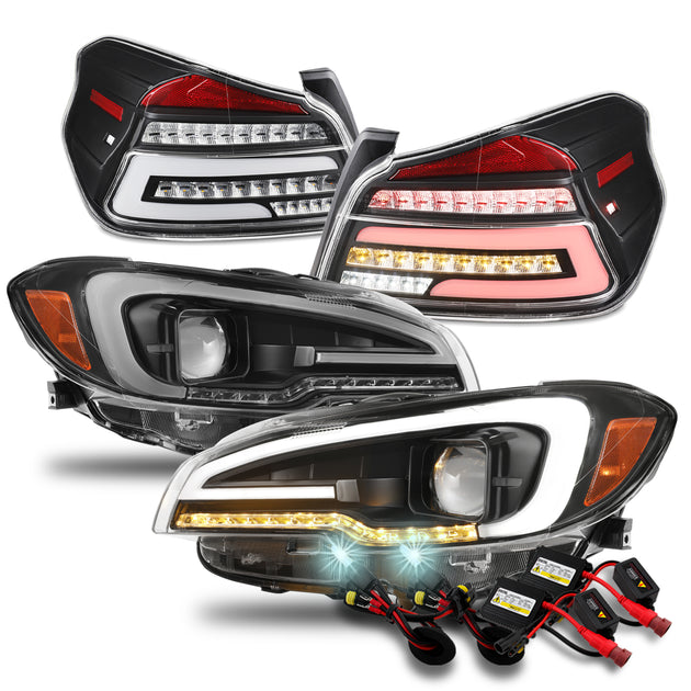 AKKON - For 2015-2021 Subaru WRX/WRX STI LED Bar DRL + Sequential Signal Projector Headlights + 6000K HID Kit