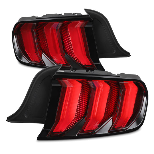 AKKON - Fits 2018-2023 Ford Mustang [Full LED] Running Sequential Turn Signal Black Red Clear Tail Brake Lights Pair