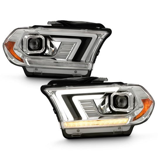 AKKON - Fit 2011-2013 Dodge Durango LED Tube Parking Sequential Turn Signal [Halogen Type] Projector Chrome Headlights Pair LH+RH