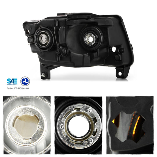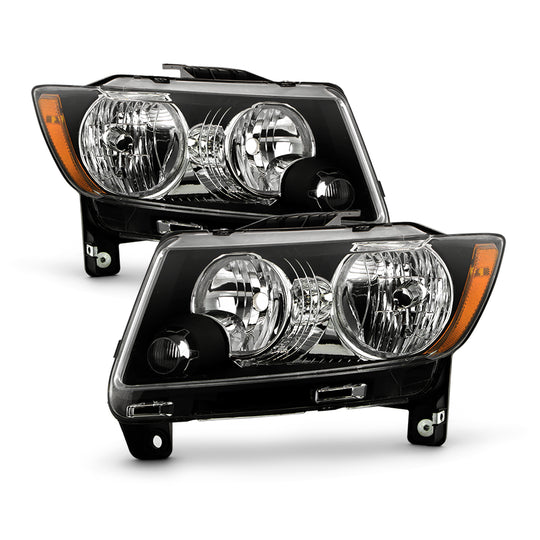 AKKON - Fit 2011 2012 2013 Jeep Grand Cherokee / 11 12 13 Compass Halogen Type OE Style Headlights Headlamps Black