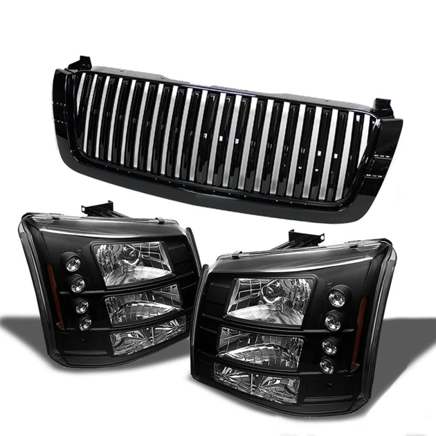 AKKON - For 2in1 Design 03-06 Chevy Silverado Pickup Truck Black Amber Headlights + Bumper light + Vertical Front Grille Mask in Black
