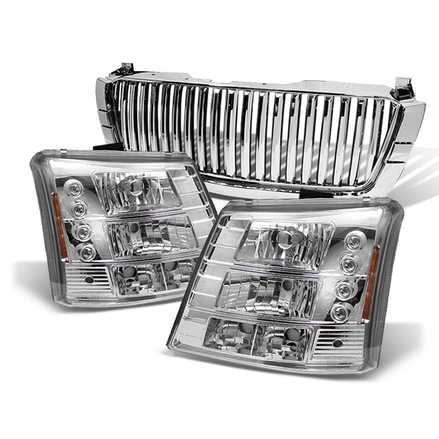 AKKON - For 2in1 Design 03-06 Chevy Silverado Pickup Truck Chrome Amber Headlights + Bumper light + Vertical Front Grille Mask