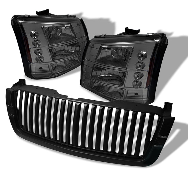 AKKON - For 2in1 Design 03-06 Chevy Silverado Pickup Truck Smoked Amber Headlights + Bumper light + Black Vertical Front Grille Mask
