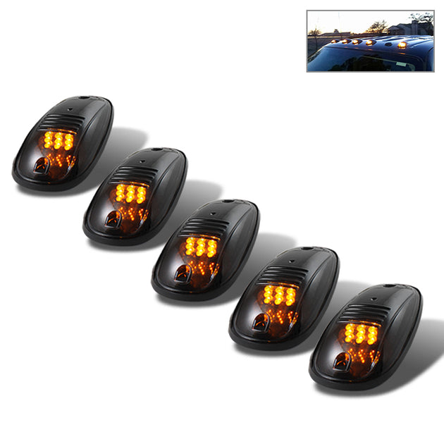 AKKON - For 5Pcs LED Cab Roof Running Marker Lights Smoked Lens Amber Pickup Truck SUV Off Road Replacement Set