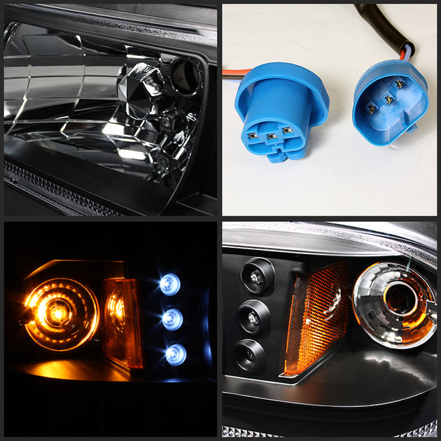 AKKON - For 87-93 Ford Mustang 1Pc Design Black Bezel LED Signal Headlights + Corner + Parking lamp Assembly