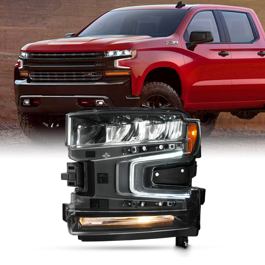 AKKON - Fits 2019-2021 Chevy Silverado 1500 [LED High&Low Beam] DRL Black Headlight Driver Left w/ Halogen Turn Signal