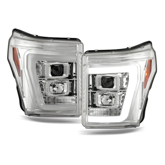 AKKON - Fit 2011-2016 Ford F250/F350/F450/F550 Super Duty LED Parking [C-Tube] Projector Chrome Headlights Pair Driver+Passenger