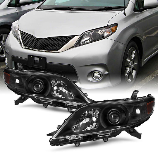 AKKON - Fit 2011-2016 Toyota Sienna SE Halogen Model OE Style Halogen Type Projector Headlights Black Housing Driver - Passenger