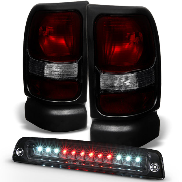 AKKON - For 94-01 Dodge Ram BR BE Red Smoked Lens Tail Light + LED 3rd Brake Cargo Lamp