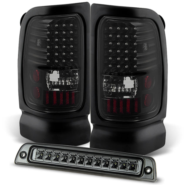 AKKON - For 94-01 Ram 1500 94-02 Ram 2500 3500 Pickup Black Smoke LED Tail Lights + Smoke LED 3rd Brake Light