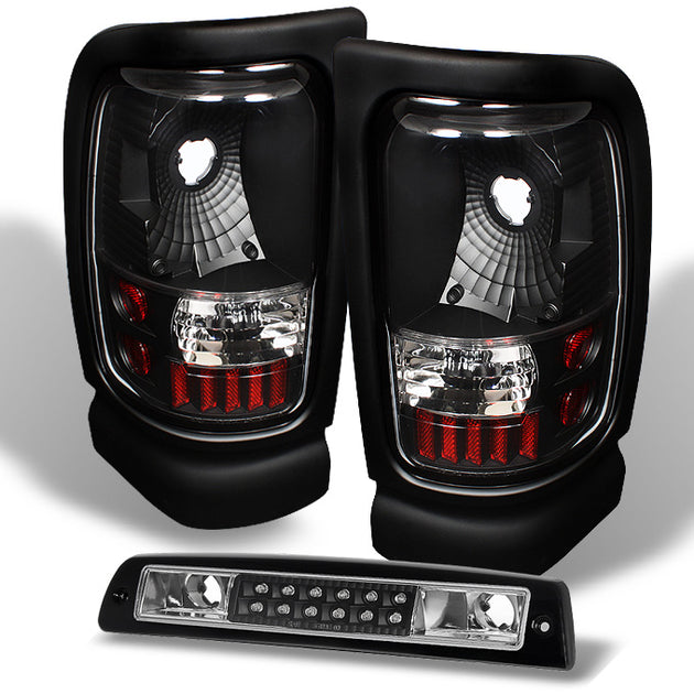 AKKON - For 94-01 Ram 1500 94-02 Ram 2500 3500 Pickup Truck Black LED Tail Lights + Black LED 3rd Brake Light