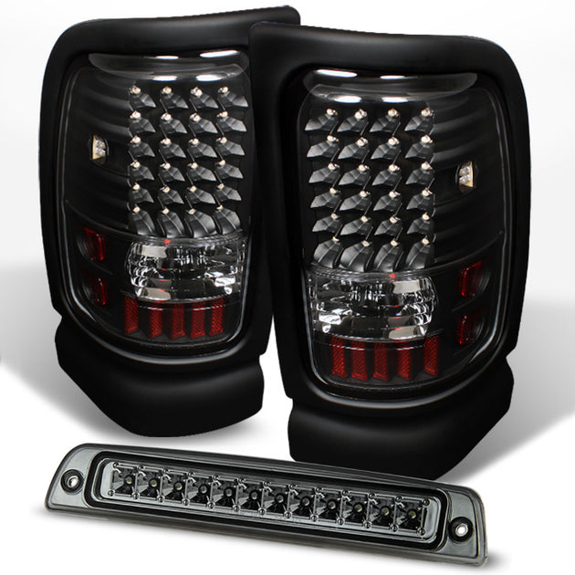 AKKON - For 94-01 Ram 1500 94-02 Ram 2500 3500 Pickup Truck Black LED Tail Lights + Smoke LED 3rd Brake Light