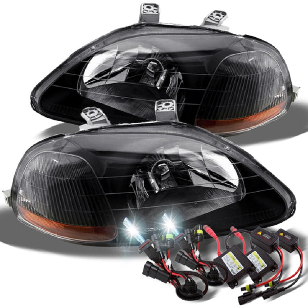 AKKON - For 96-98 Honda Civic OE Replacement Black Headlights Driver/Passenger Head Lamps +6000K Slim HID Xenon Kit
