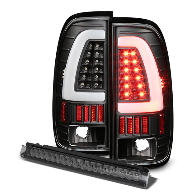 AKKON - For 97-03 F150 Styleside | 2004 F150 Heritage LED Tube Black Taillights + Smoke Full LED 3Rd Brake Lamp