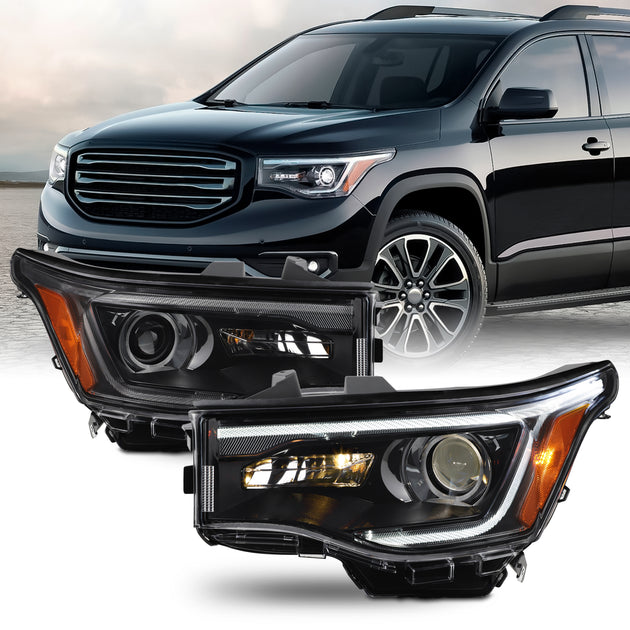 AKKON - Fit 2017 2018 2019 GMC Acadia 17-19 w/LED DRL Halogen Projector Headlight Black Houing OE Style Driver + Passenger