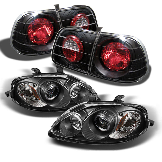 AKKON - For 99-00 Honda Civic Black Bezel Dual Halo Ring Projector Headlights + JDM Altezza Tail light